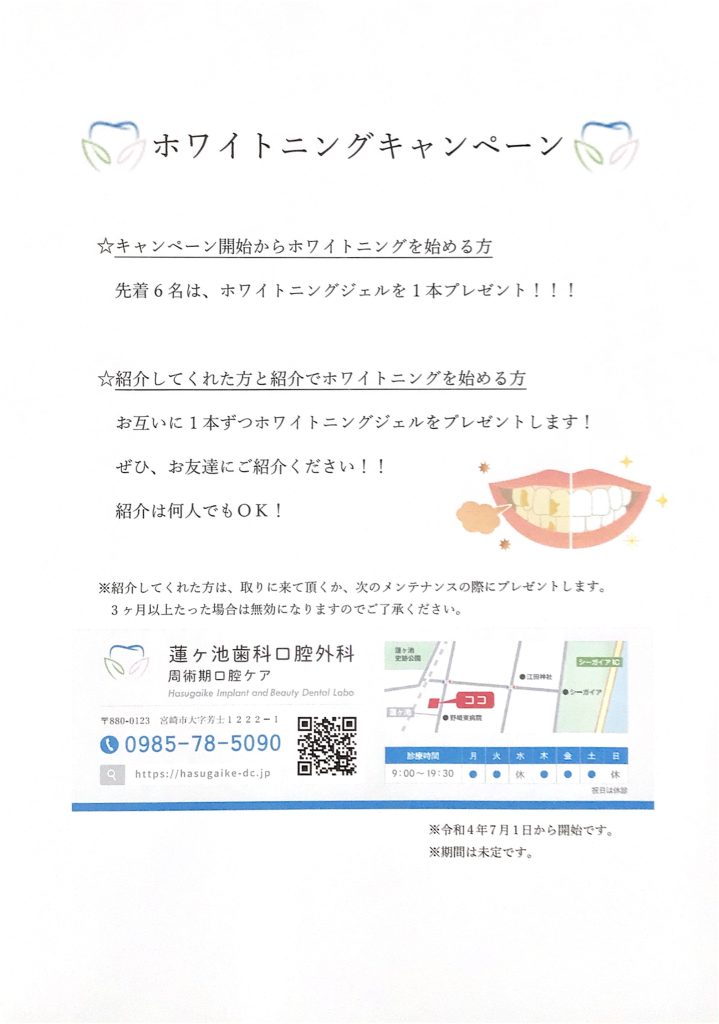 前回、ご好評いただいたホワイトニングキャンペーン第2弾が7月1日より始まります‼︎