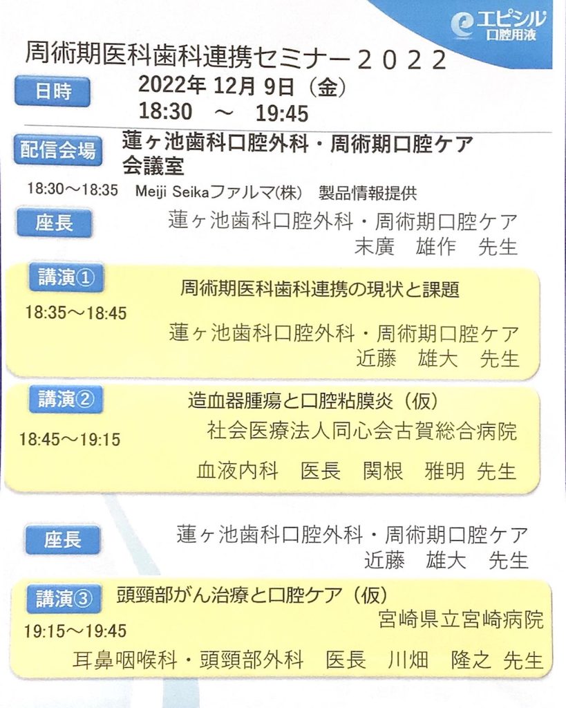 医療従事者向けセミナーについて 投稿日 2022年10月21日 著者 staff カテゴリー お知らせ こんにちは‼︎蓮ケ池歯科口腔外科・周術期口腔ケアです✨ 12月9日に医療従事者を対象としたセミナーを開催する事になりました zoomでのご視聴となりますのでお気軽にご参加ください♪ 講座名『周術期医科歯科連携セミナー2022』 日時:12月9日 18時30分〜19時45分 #宮崎#蓮ケ池#アライナー矯正#インプラント#ホワイトニング#スポーツ用マウスピース#ジルコニア#セラミック#親知らず抜歯#白玉点滴#口腔外科#親知らず#周術期口腔ケア#マイナンバーカード