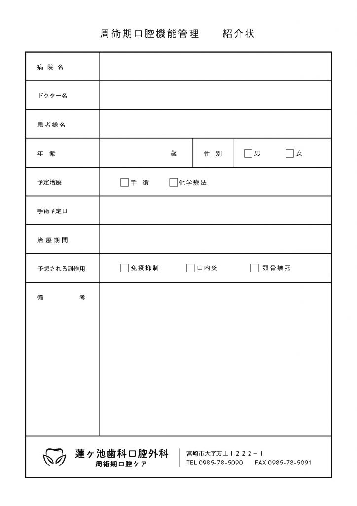 各項目を担当医に記入していただき、初診時にご持参ください。